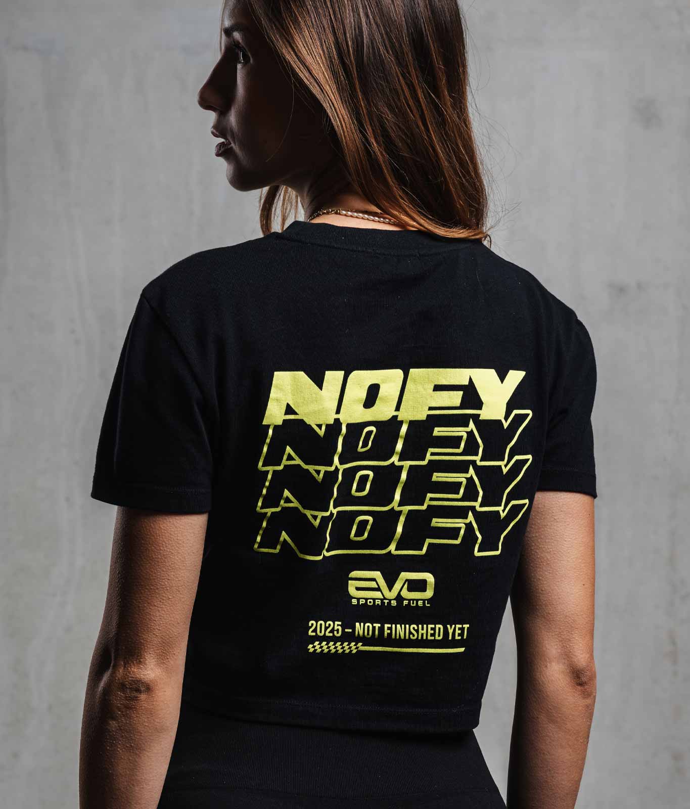 Dieses Shirt bringt NOFY und EVO Sports Fuel zusammen – für alle, die sich selbst pushen. Not Finished Yet.